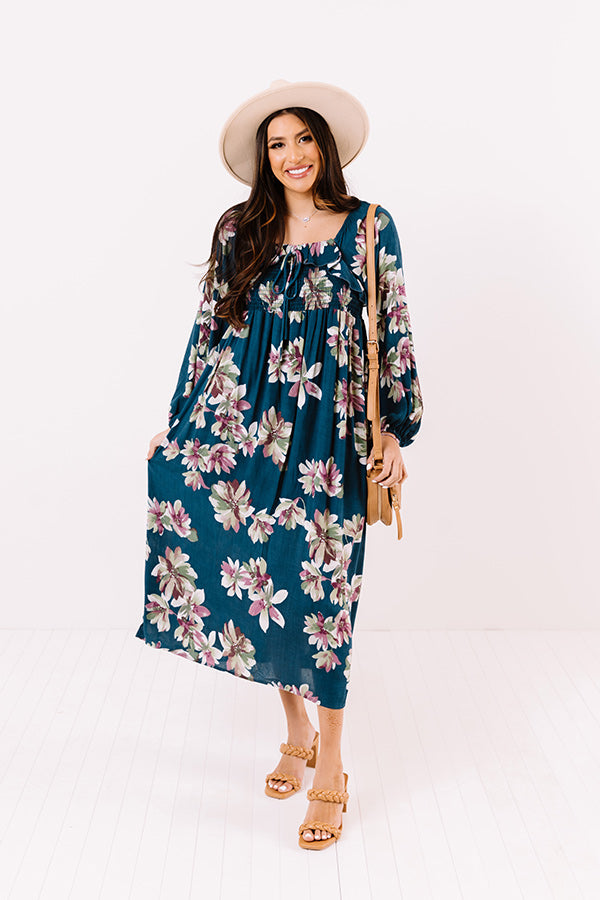 Affectionate Feeling Floral Smocked Maxi Dress in Sky Blue