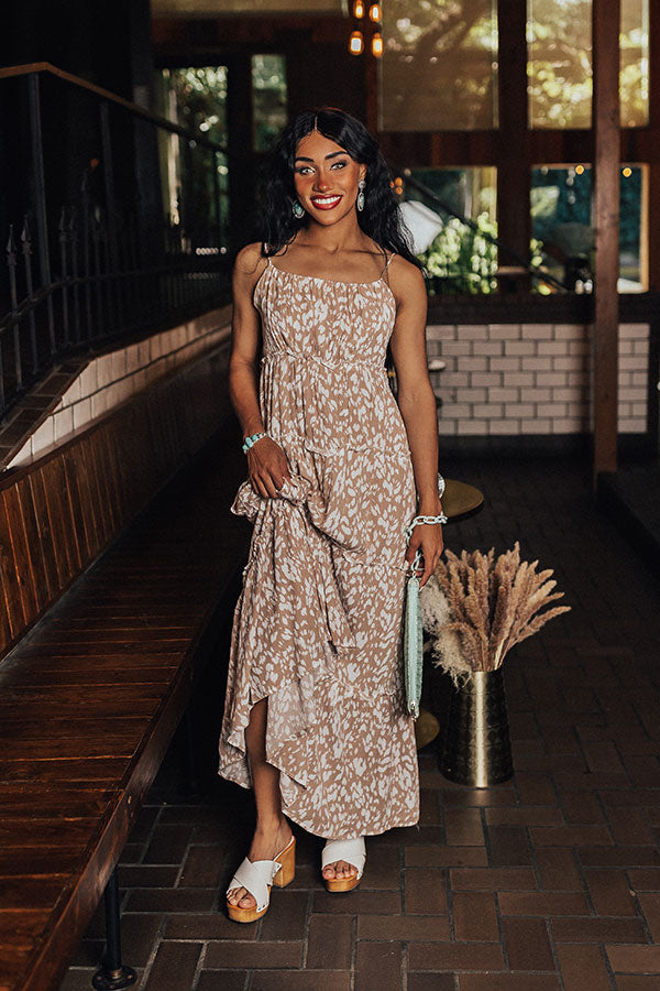 Amber Skyline Floral Mesh Midi Dress in Taupe