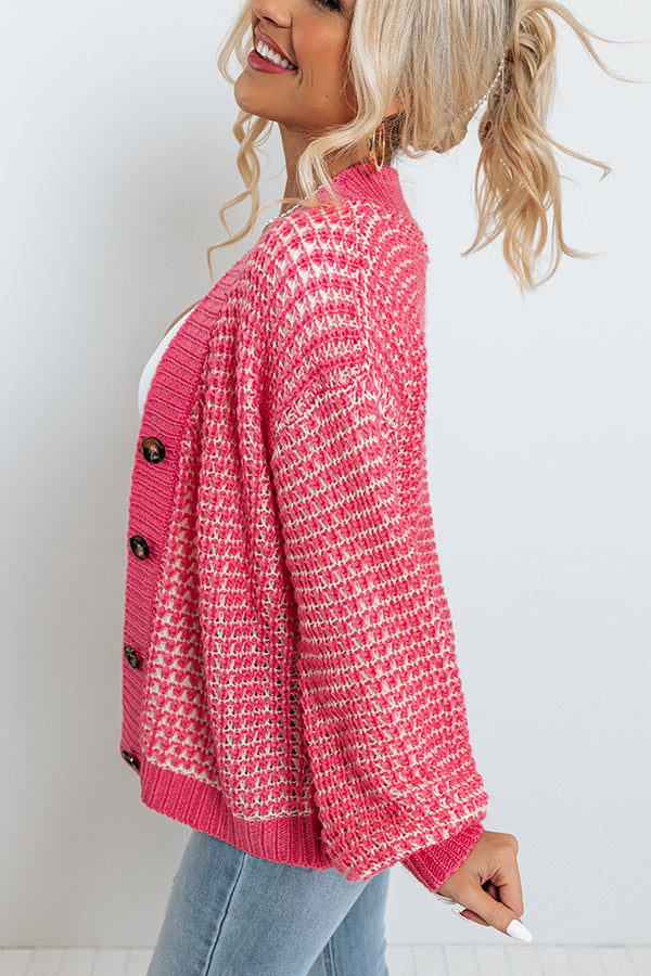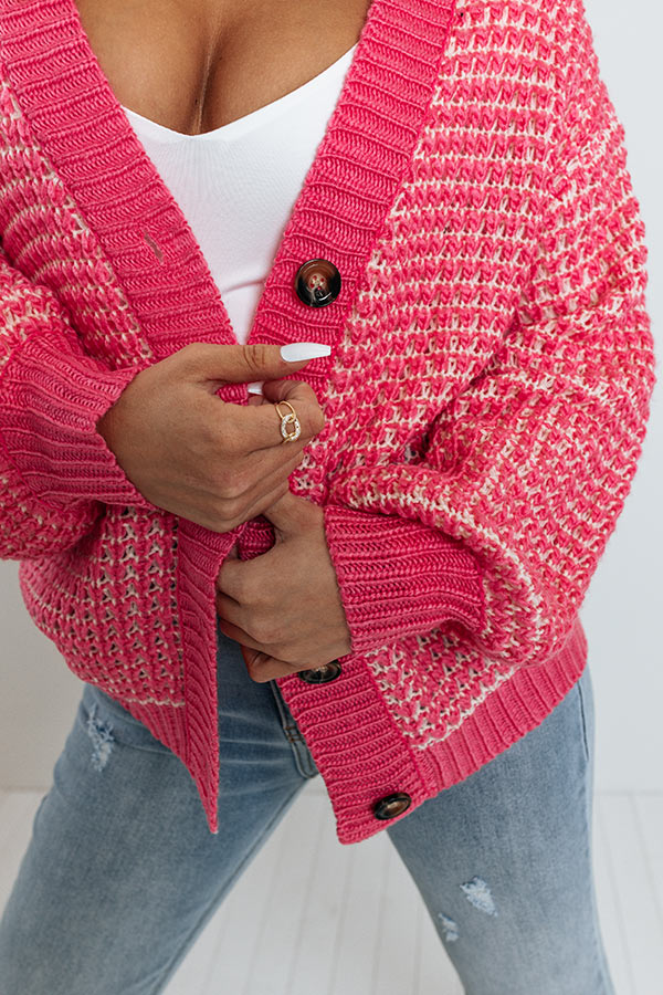 Layer up fabulously this Valentine's Day with our darling hot pink 'Act Out Of Love' cardigan featuring warm knit material. a four button down front with a v-cut neckline. long loose sleeves. and a slouched silhouette that falls into a straight hemline!