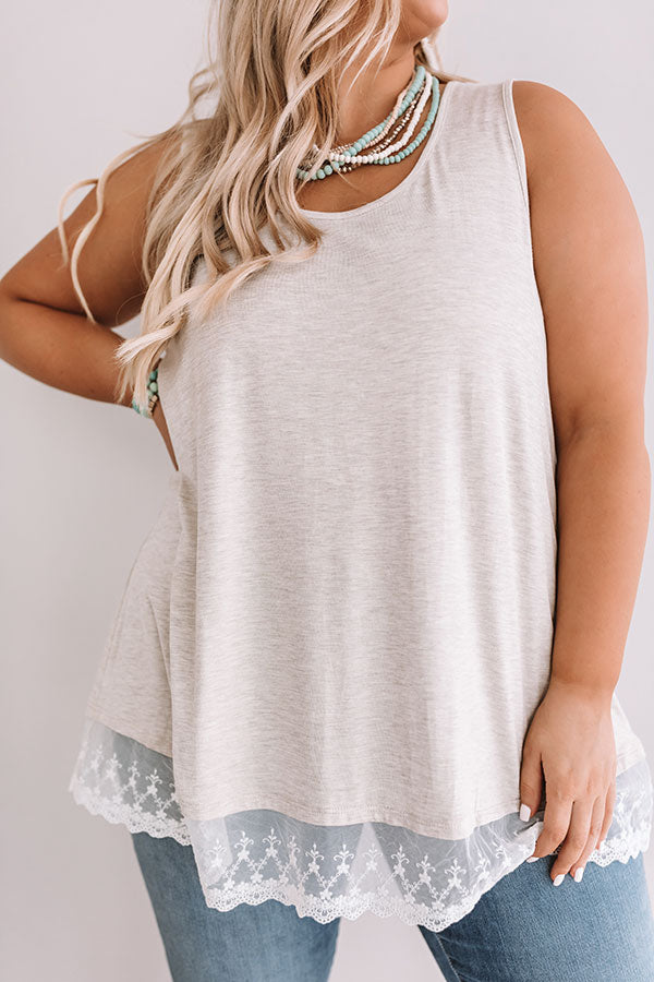 Plus Size - Shift tanks will never go out of style and this adorable birch one is adorned with a lace hem and scoop neckline! Style with some dark denim. nude wedges. and leopard overlay for a feminine and captivating outfit!