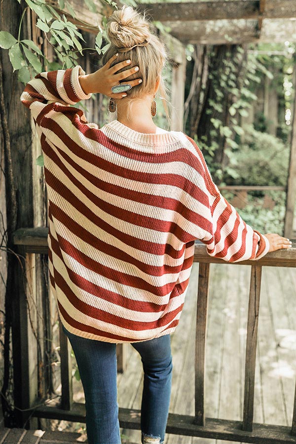 Grab a coffee and ready to cozy up at the cabin in your new favorite knit sweater! From bonfires to brunch. this thick sweater will keep you warm on the chillest of days. This adorable striped sweater features a hemmed crew neckline. hemline. and oversized sleeves! We're absolutely obsessed with the oversized fit and ultra-cozy feel of this closet essential. - Hand wash cold. Hang to dry. - Unlined